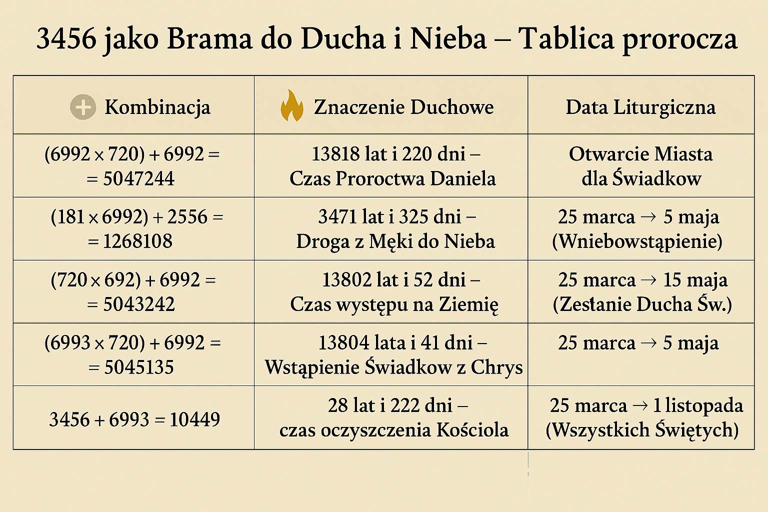 Wszystkie liczby, daty i struktury przedstawione na stronie są elementem duchowej interpretacji Objawienia — traktowane jako symboliczny język Boga, a nie matematyczne prognozy.